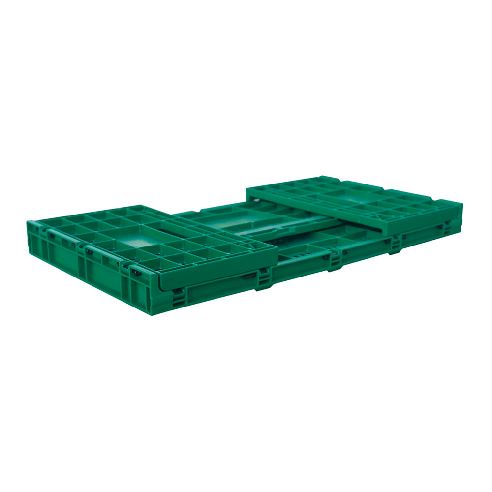 جعبه تاشو پلاستیکی استانداردهای بین المللی را پذیرفته و با پالت استاندارد اروپایی نوع 1210، استاندارد اروپایی نوع 1208 یا پالت استاندارد ژاپنی نوع T11 همکاری می کند که می تواند جابجایی مکانیزه، بهبود راندمان گردش مالی و کنترل میزان آسیب محموله را انجام دهد. همچنین می توان از آن با گاری های لاک پشت برای چیدن و جابجایی استفاده کرد.