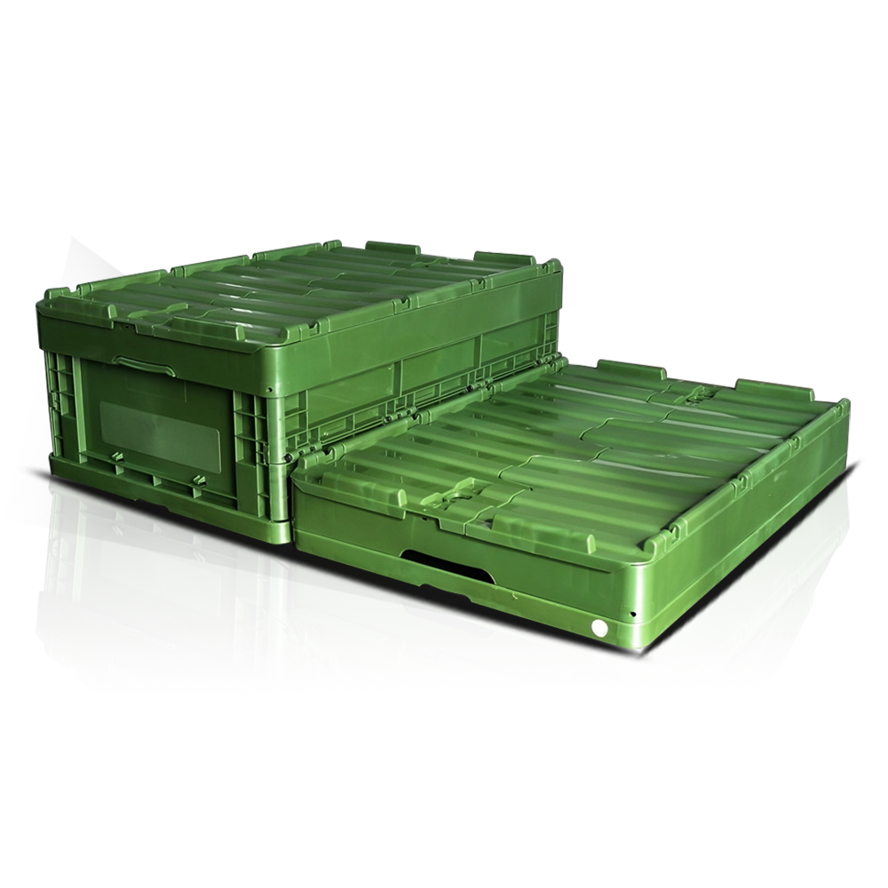 جعبه تاشو پلاستیکی استانداردهای بین المللی را پذیرفته و با پالت استاندارد اروپایی نوع 1210، استاندارد اروپایی نوع 1208 یا پالت استاندارد ژاپنی نوع T11 همکاری می کند که می تواند جابجایی مکانیزه، بهبود راندمان گردش مالی و کنترل میزان آسیب محموله را انجام دهد. همچنین می توان از آن با گاری های لاک پشت برای چیدن و جابجایی استفاده کرد.
